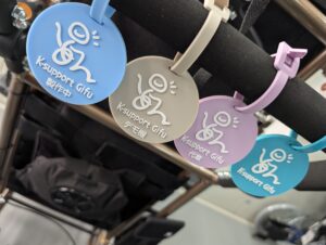 社内車いす用ラバーストラップ導入しました。 車いすの役割を記載したラバーストラップを導入しました。 弊社での車いすの分類は デモ機、代車、製作中、の車いすがあるので担当者でなくても見分けができるようにしました。 かわいい感じでできたのでみんなで大切に使っていきます。