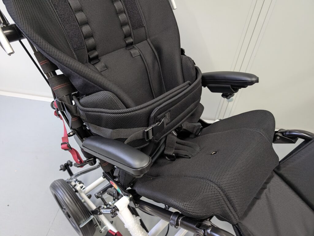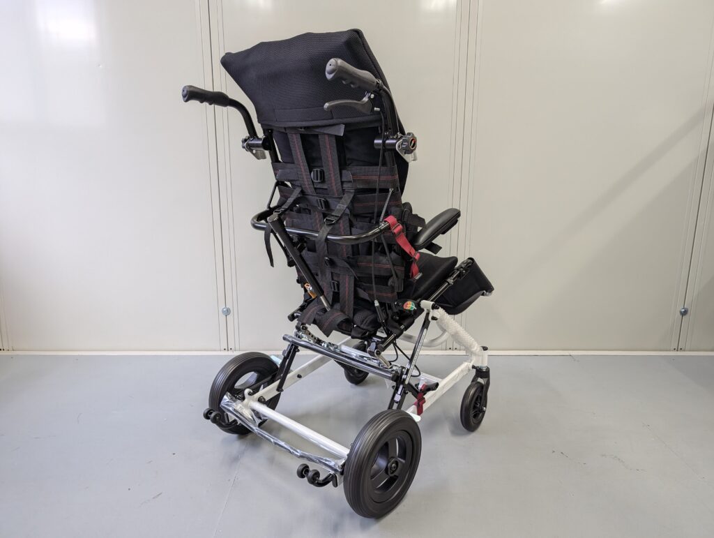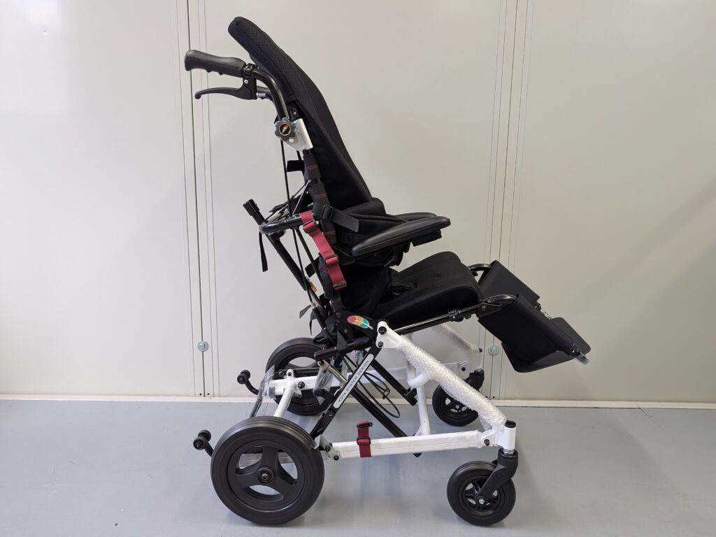 段階式リクライニング・ティルトのモジュラー式介助用車椅子です。