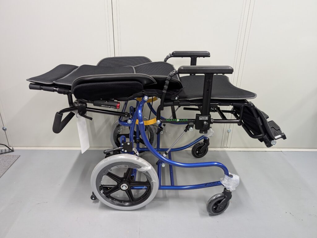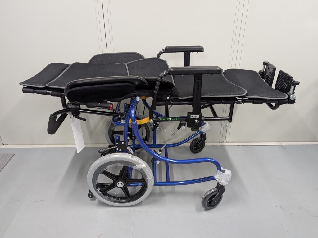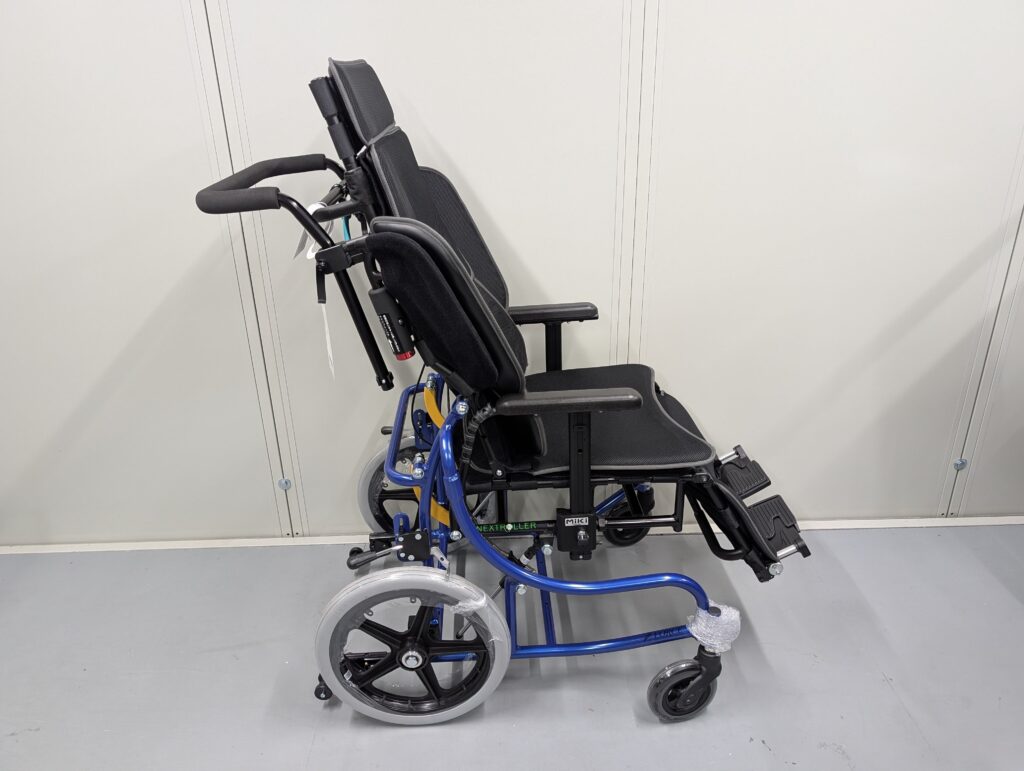 「身体がズレる」「介助操作が重くて大変」というリクライニング式車いすの欠点を、マルチリンク機構を採用することで解決した固定タイプのリクライニング車いすです。